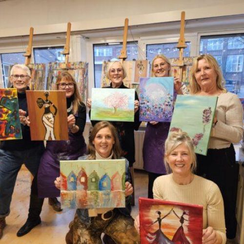 "Super leuke middag gehad, gewoon even paar uur lang de focus op het schilderij. Zeer tevreden over resultaat. Met name de combinatie van deze workshop met de (spirituele) salestraining van Key2 door Antoniette Vrisekoop en een heerlijke lunch bij “de Toog” maakt dit een perfecte dag voor ieder bedrijf/ afdeling die eens wat anders willen."