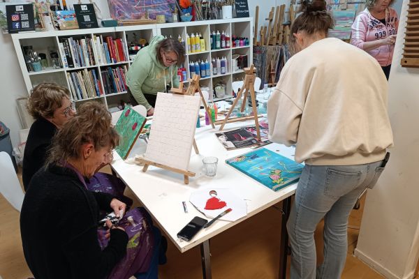 Na een korte uitleg over kleurentheorie en het schilderen met acrylverf maakt iedereen een eigen schilderij op een canvasdoek. Wij helpen uiteraard met tips en trics. Extra leuk is het om een gezamenlijk onderwerp te kiezen. bijvoorbeeld bloemen, vlinders, taartjes etcetera. Wij zorgen voor voldoende voorbeelden.