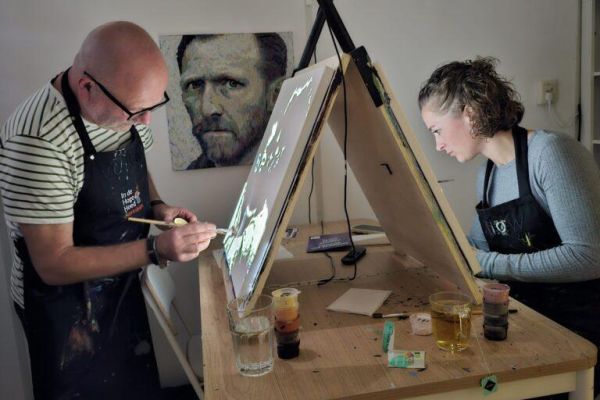 Met onze unieke techniek maak je in één middag een verbluffend mooi portret. Je levert zelf een foto aan en kiest de kleuren. De lichtprojectie leidt je stap voor stap naar het eindresultaat.
